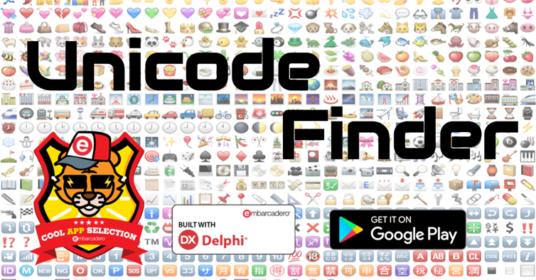 Unicode Finderは、Unicodeデータベースから、テキスト設定で使用する文字、記号、絵文字を検索します。このツールは、RAD StudioのDelphiおよびマルチデバイスフレームワークのFireMonkeyを使って開発されています。ユーザーは、以下の画面ショットのように、データベースの検索、操作を行う複数のオプションが用意されており、それぞれのアイテムについての豊富な情報も得られます。