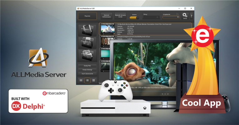 ALLMediaServerは、ネットワーク上の任意のプラットフォームからメディアを利用できるようにする素晴らしいプログラムです。ALLMediaServerは、(ストリーミング、ビデオ、音楽、写真などの)コンテンツを、テレビ、スマートフォンなど、接続された任意のデバイスに配信できるようにネットワーク接続を利用します。DelphiとRAD Studioによって開発されており、素晴らしい成果を上げています。