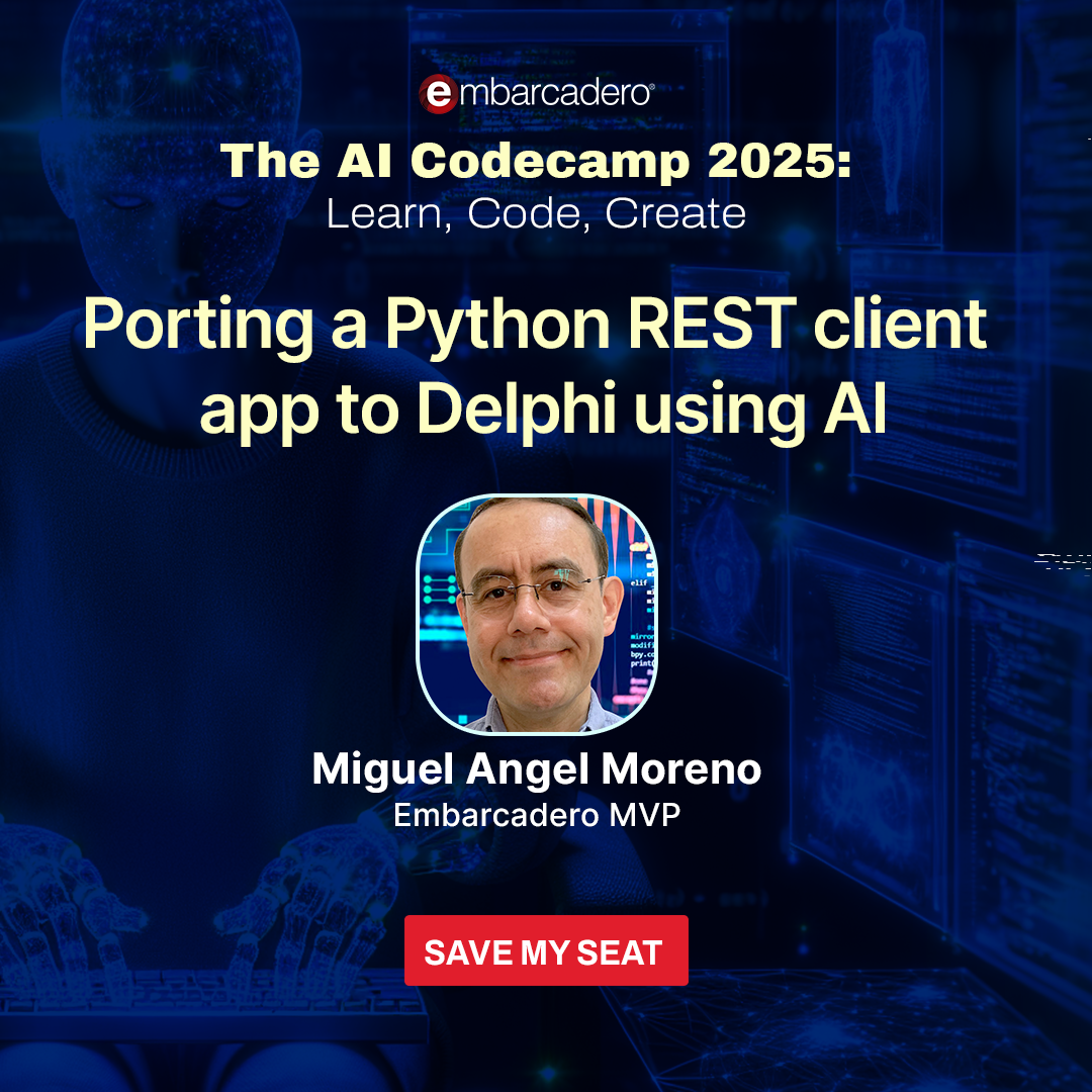 Have you ever tried to convert or translate a Python application into Delphi? Yes, surely it can be done manually, and even though Python’s syntax somewhat resembles the Delphi language syntax, the real burden is in translating or converting the run-time libraries and third-party library calls from Python to Delphi. This hands-on webinar will show you how a real life Python REST full client application can be ported to Delphi in just a couple of hours instead of a couple of weeks by using AI as a conversion assistant tool!